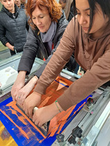 Un atelier de sérigraphie a été organisé avec les élèves de FLS, dans le cadre de l'initiative Jeunes en librairie, visant à familiariser les jeunes avec les métiers du livre et de l'édition. Sous la conduite de leurs enseignantes, Cathy et Théry, les étudiants ont traduit une citation d'Eleanor Roosevelt dans leur langue maternelle respective : le français, l'arabe, l'espagnol, l'albanais, l'ukrainien et le birman. Par la suite, ils ont imprimé cette citation sur des sacs totebags.